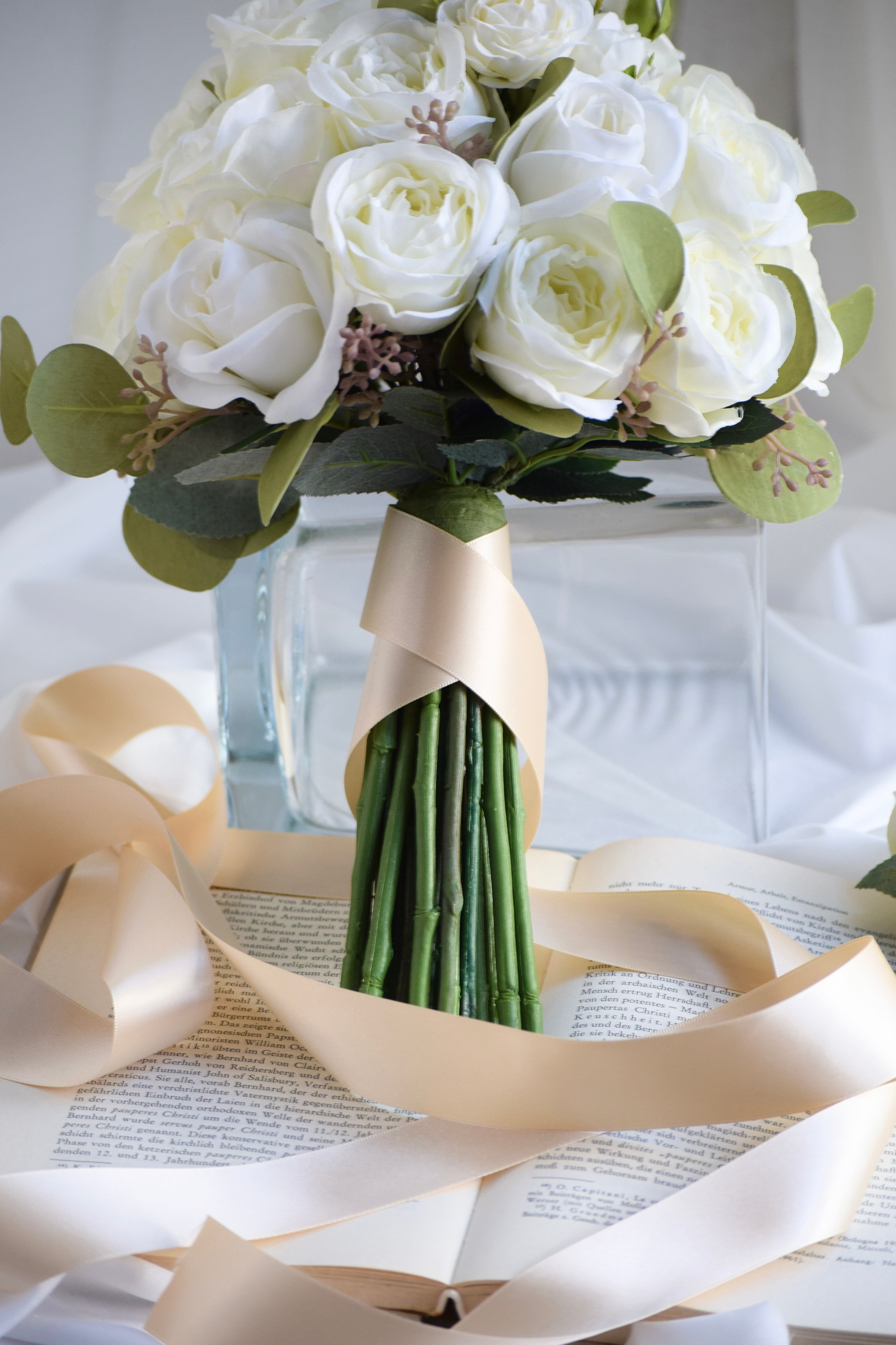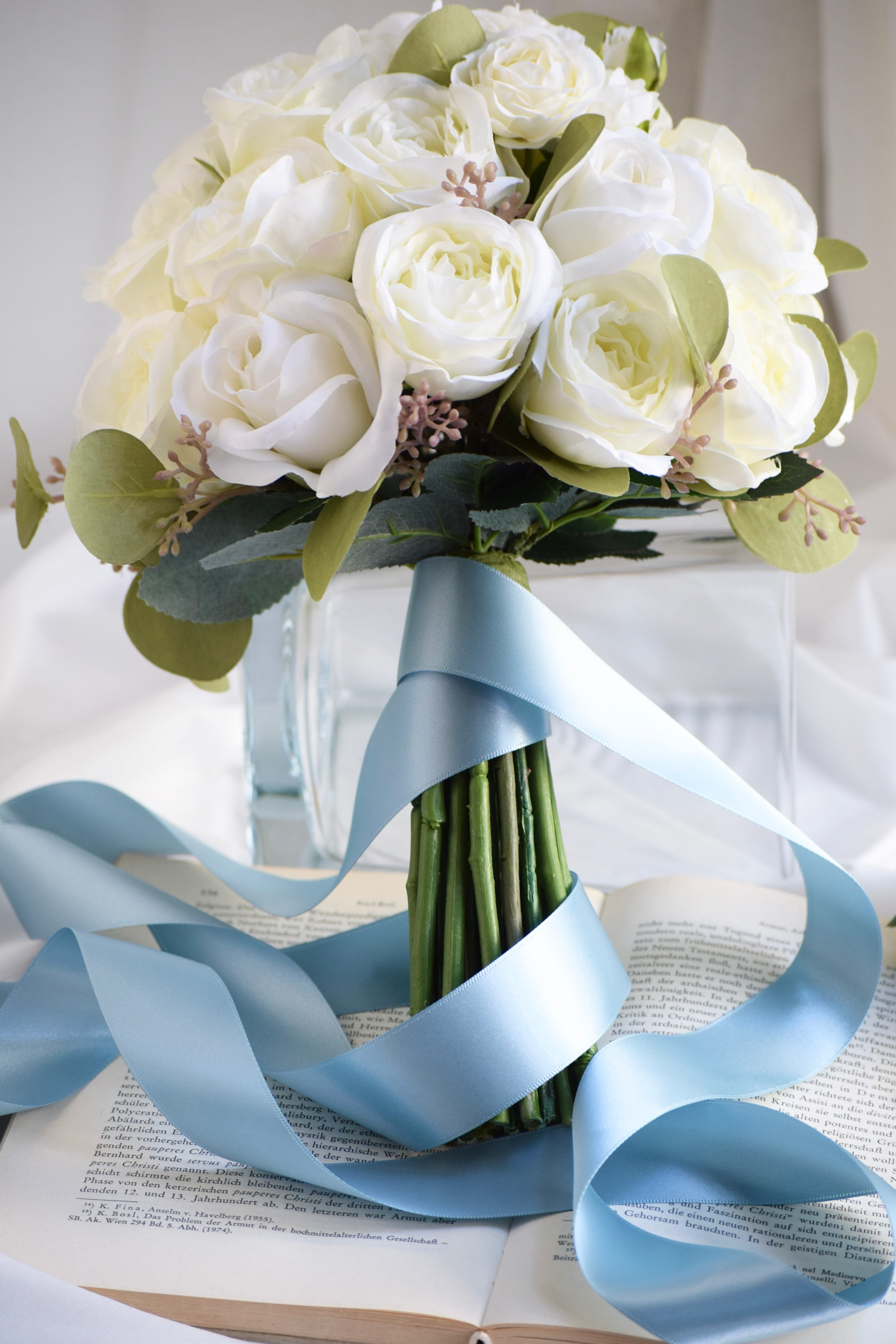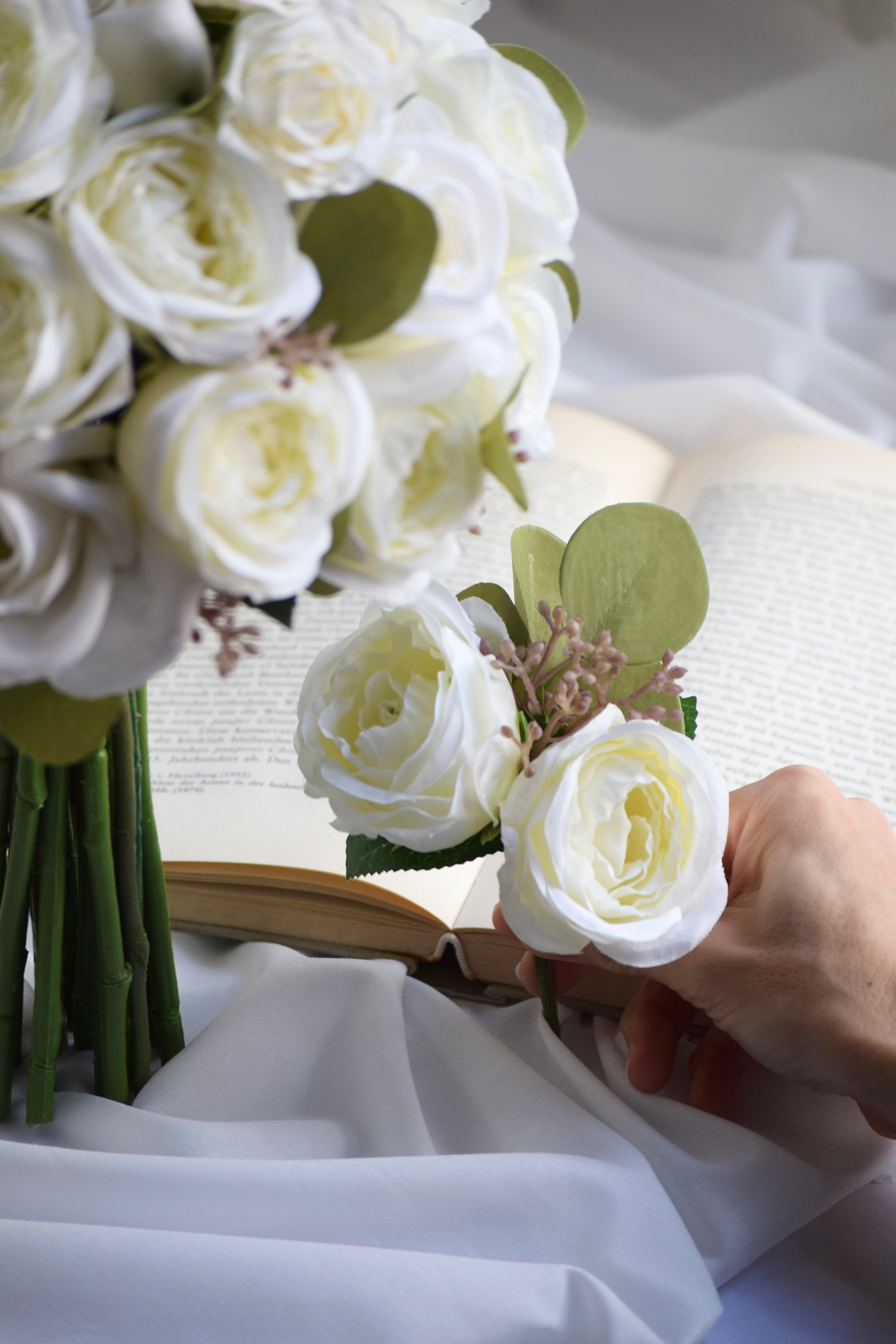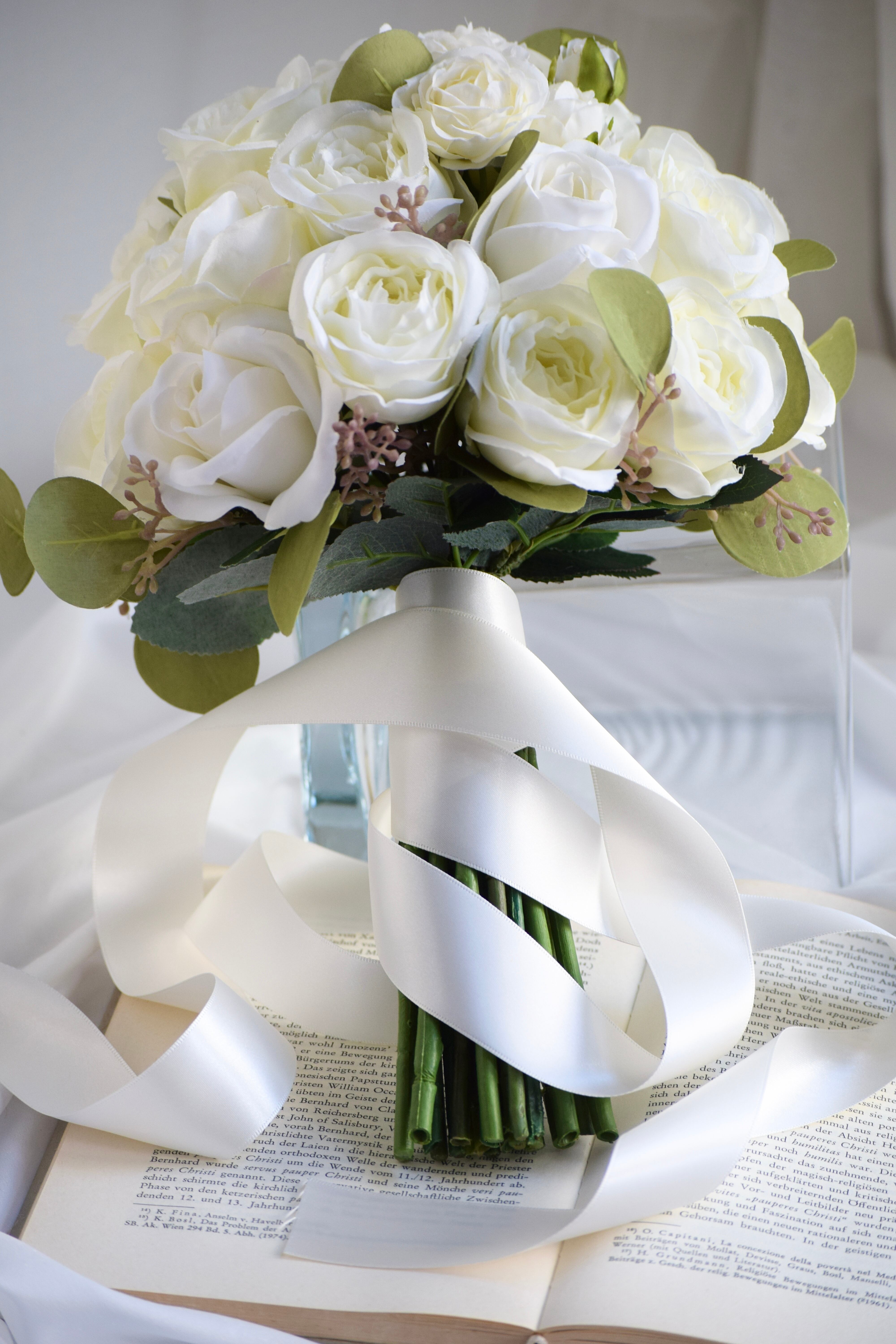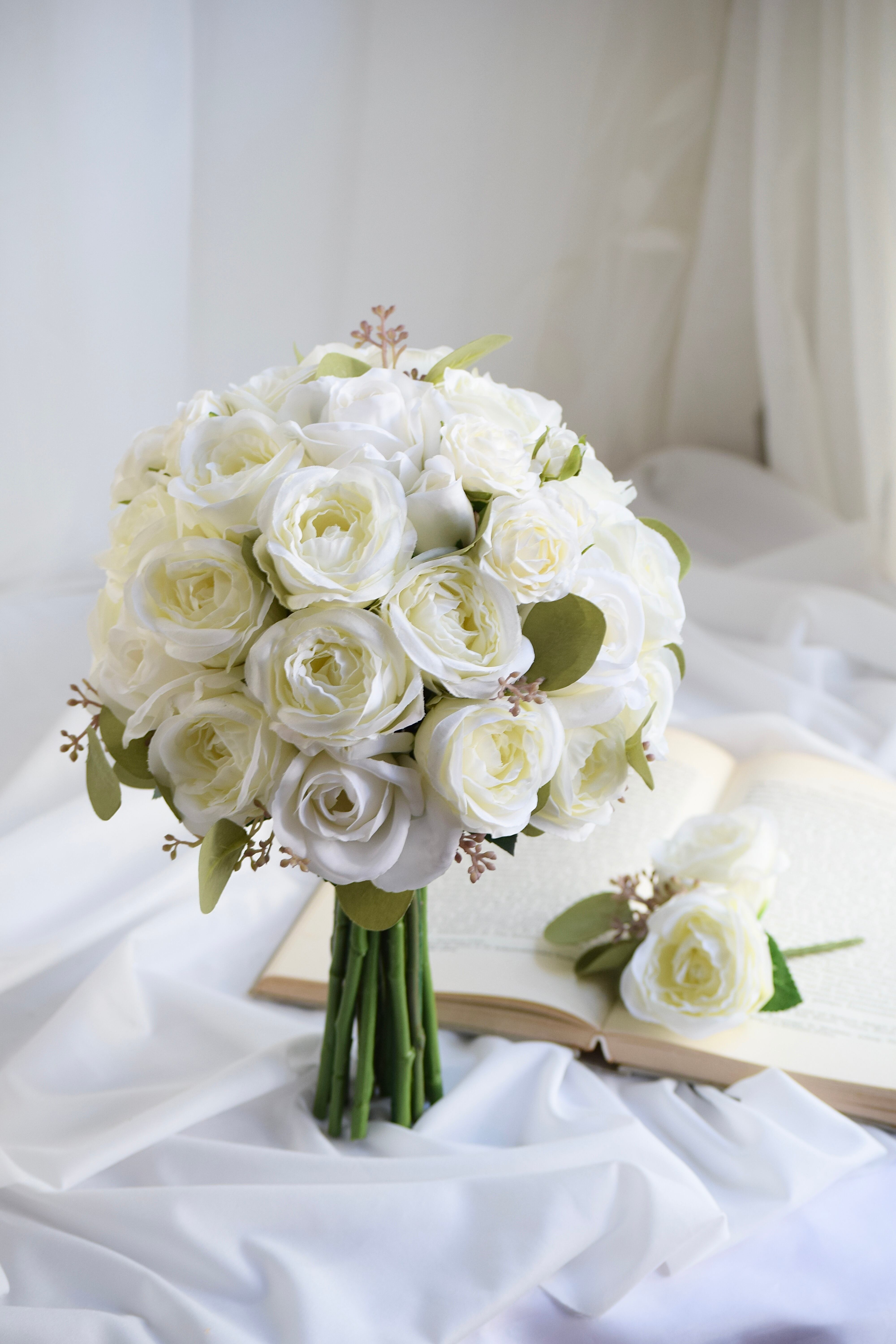 3種類のバラと丸葉ユーカリを合わせてシンプルだけどウエディングの象徴とも言えるブーケです。ユーカリの実をアクセントにより自然なラウンドタイプのクラッチブーケに仕立てました。全て高品質な造花を使用しているためガーデンウエディングや海辺でのロケーション撮影でもお花の状態を気にすることなく安心して何時間でも、何回でもお持ちいただけます。ウエディングドレスからカラードレスまで幅広いスタイリングにぜひお選びください。